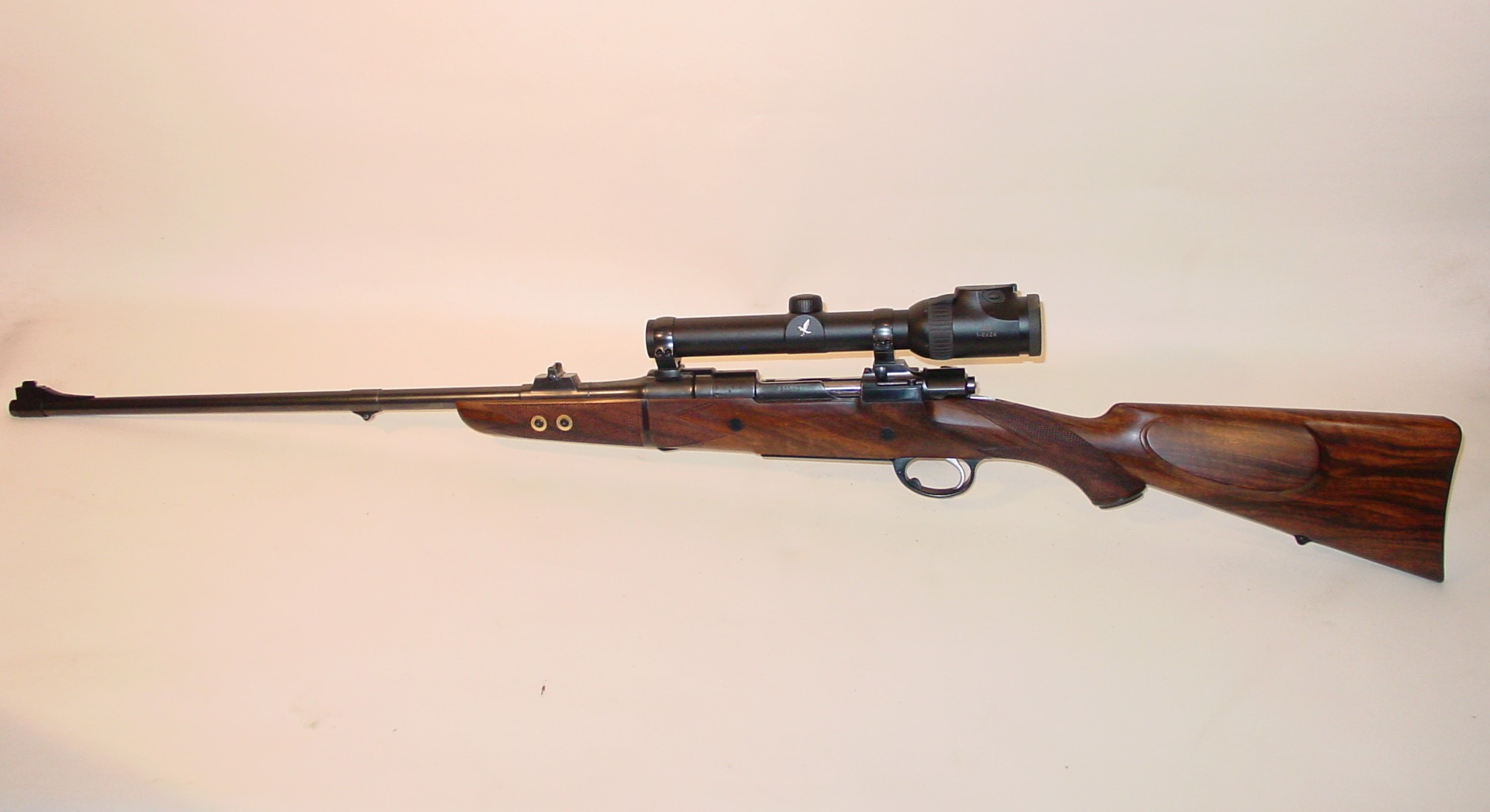 Light stalking Rifle in 7 x 57 mm. The 26" Barrel Chronographs Impressive Velocity, Ebony Schnabel Fore End Tip.